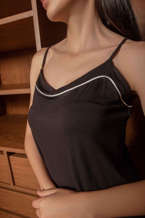 - Caraco : Ce caraco en coton viscose est orné d'un liseré fin de couleur différente sur les bords, créant un contraste élégant et moderne.