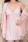 Coffret élégant en satin de soie et dentelle : kimono, nuisette, pantalon, short, top. Idéal pour mariée ou moment cocooning.