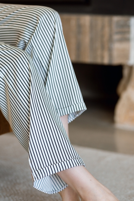Pantalon fluide en satin rayé noir/blanc