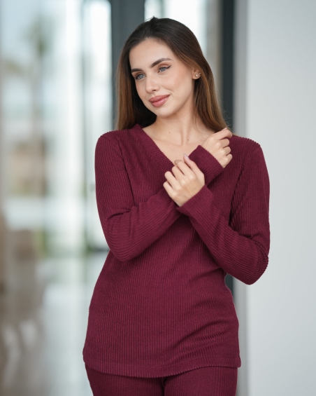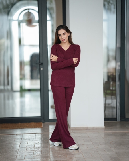 Ensemble jogging femme 2 pièces en tissu hacci côtelé, ultra doux et extensible. Une coupe élégante pour un confort chic à la maison comme à l’extérieur.