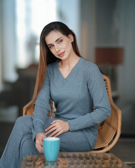 Ensemble jogging femme 2 pièces en tissu hacci côtelé, ultra doux et extensible. Une coupe élégante pour un confort chic à la maison comme à l’extérieur.
